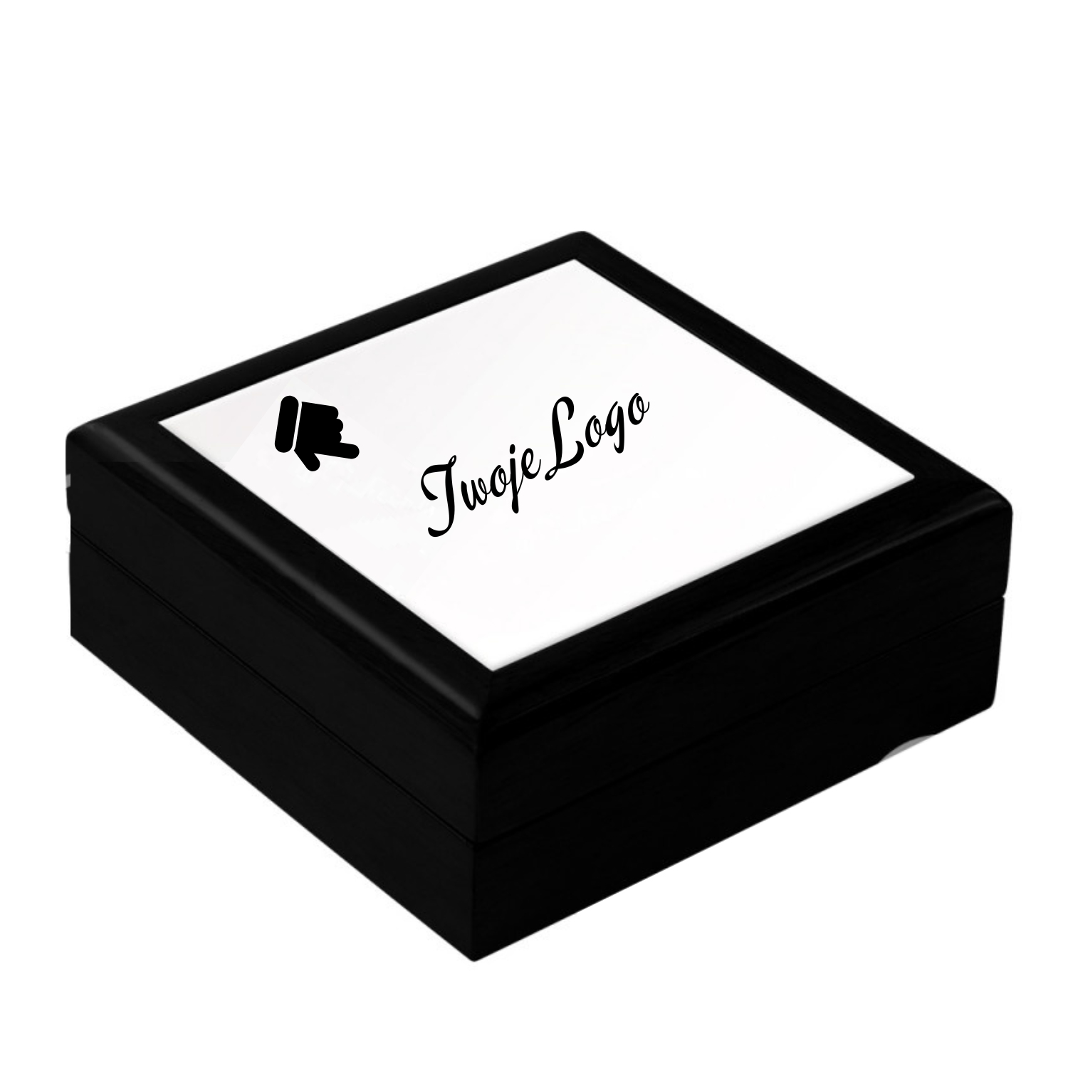 Szkatułka Noir Sublime z serii premium to eleganckie połączenie czarnego, lakierowanego drewna i białej ceramicznej płytki przeznaczonej do nadruku sublimacyjnego. Jej klasyczny design i błyszczące wykończenie nadają produktowi prestiżowego charakteru, a wnętrze wyłożone miękkim materiałem chroni biżuterię, pamiątki czy drobiazgi.