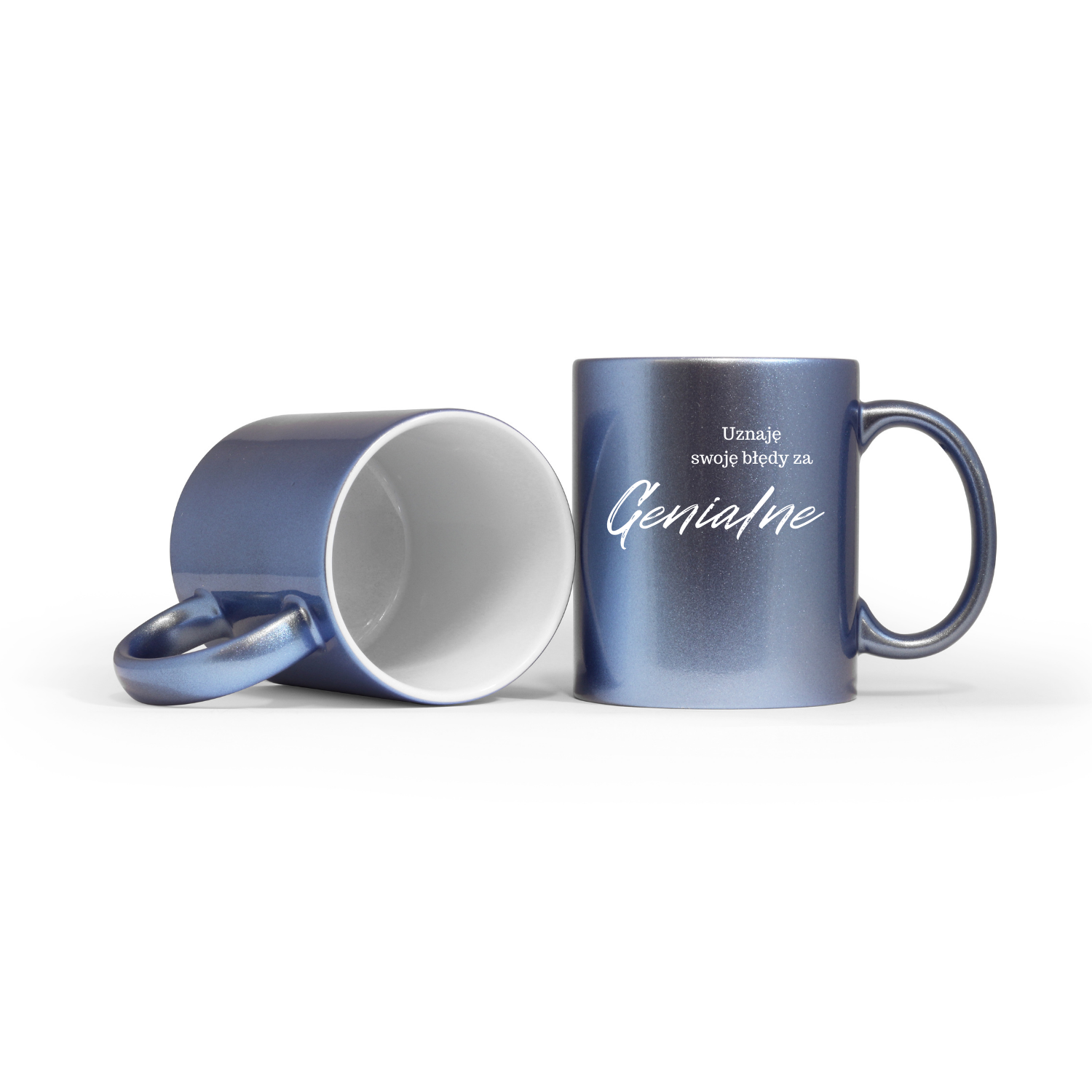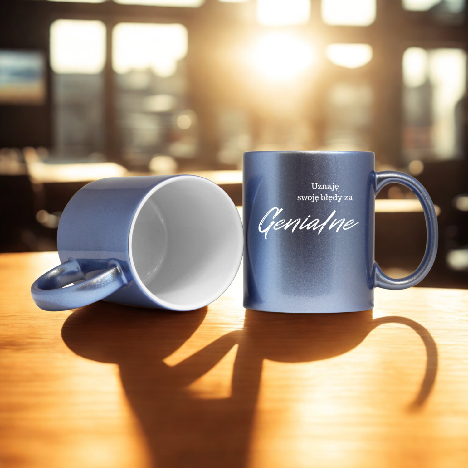 Kubek AZUREO to elegancki fotoprezent, który zachwyca swoim metalicznym, niebieskim połyskiem. Jego powierzchnia odbija światło, nadając nadrukom wyjątkowej głębi i charakteru. Dzięki specjalnej powłoce poliestrowej nadruk sublimacyjny jest trwały, intensywny i pełen detali – zdjęcie, dedykacja czy grafika stają się integralną częścią kubka. To idealny wybór na prezent okolicznościowy, elegancki gadżet reklamowy czy element ekskluzywnego zestawu. Kubek AZUREO sprawia, że codzienna kawa lub herbata nabierają wyjątkowego charakteru, a personalizacja czyni go jedynym w swoim rodzaju.