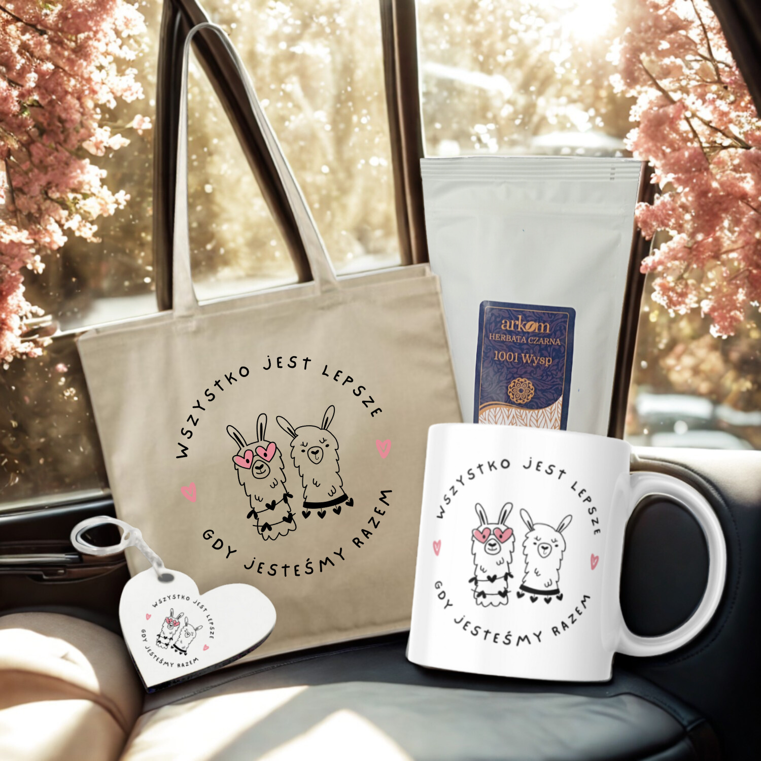 Zestaw może zostać wzbogacony o indywidualny nadruk – np. imiona, datę, dedykację lub kolaż zdjęć – co czyni go wyjątkowym i dopasowanym do konkretnej relacji. Dzięki temu każdy zestaw staje się niepowtarzalnym wyrazem bliskości.